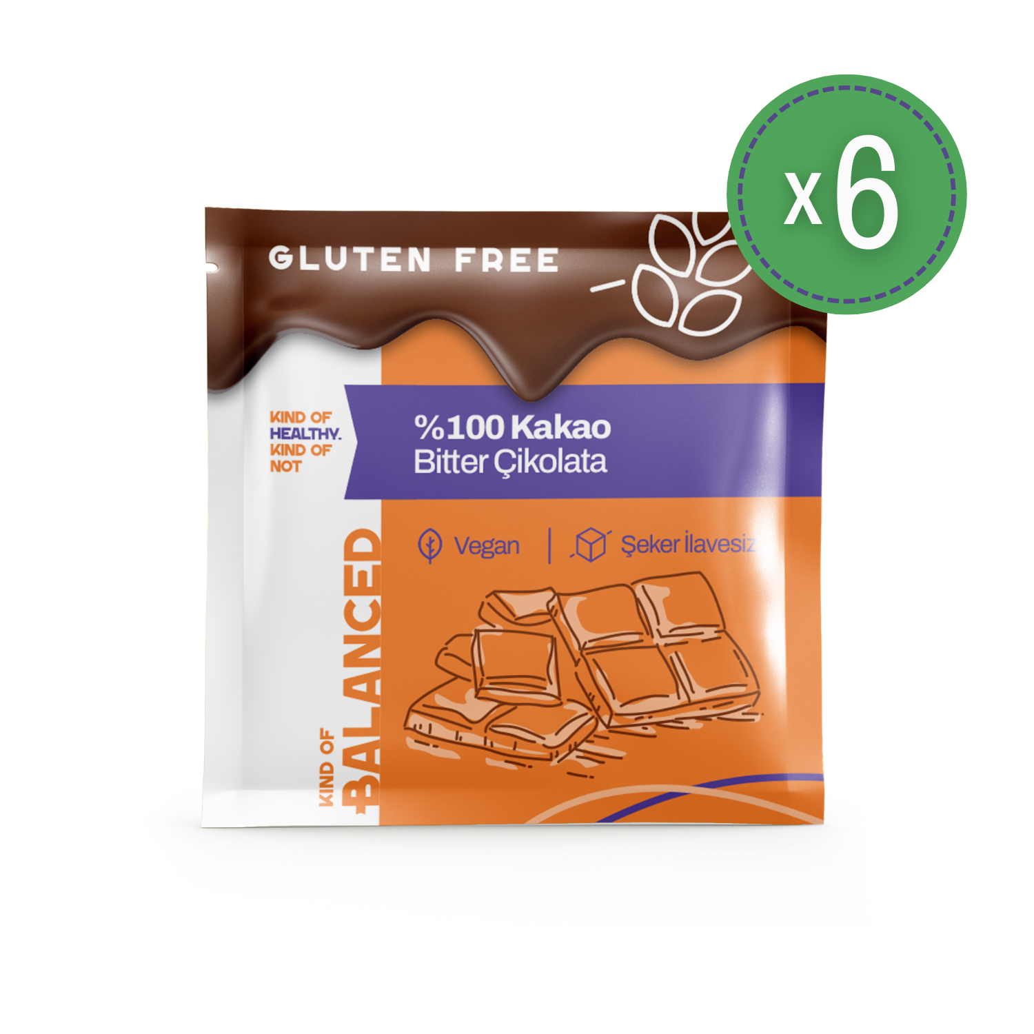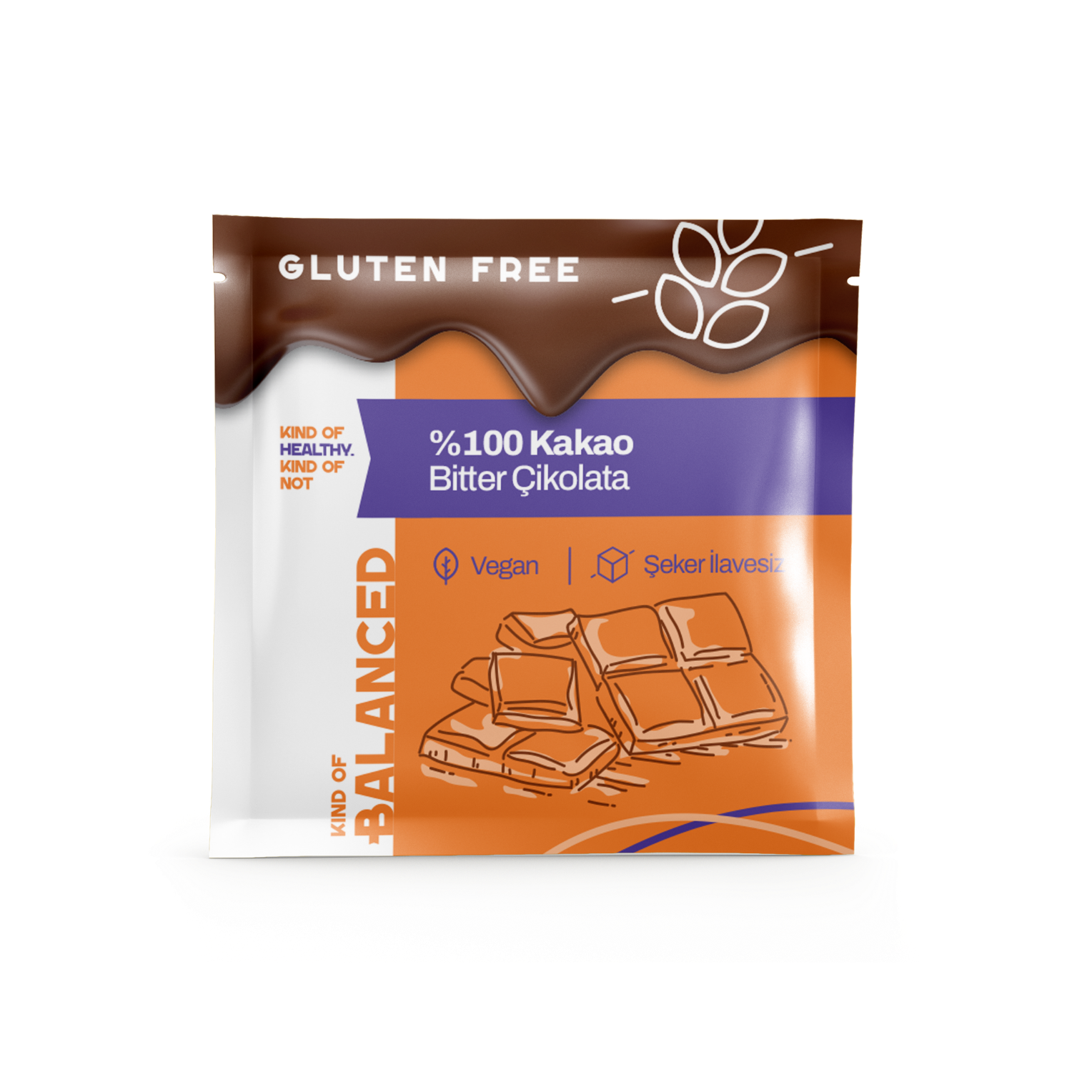 Kind Of Balanced Glütensiz %100 Kakao Şekersiz Bitter Çikolata, sadece kakao kitlesi, kakao yağı ve toz kakao gibi saf içeriklerin bir araya getirilmesiyle hazırlanmış katkısız bir çikolatadır. Bu ürün şeker ilavesiz, glutensiz ve vegan dostu yapısıyla gerçek kakao tadını en yoğun haliyle sunar. Kakao kuru maddesi %100 olarak formüle edilmiştir, bu da çikolatanın saf kakao lezzetini doğrudan deneyimlemenizi sağlar ve klasik çikolatalara göre çok daha derin bitter aromatik bir tat profili sunar.