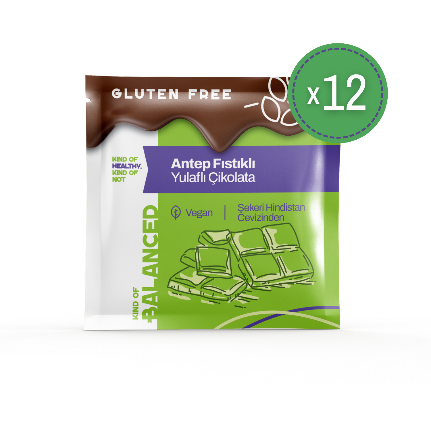 Kind Of Balanced Glütensiz Antep Fıstıklı Yulaflı Çikolata, glutensiz beslenmeyi tercih edenler için özel olarak hazırlanan, doğallığından ödün vermeyen bir çikolata ürünüdür. Bu çikolata, kakaonun yoğun aroması ile bir araya getirilen yulaf tozu ve hindistan cevizi şekeri gibi sade içeriklerin yanı sıra antep fıstığı parçacıklarıyla zenginleştirilir; böylece hem çikolatanın lezzetini hem de atıştırmalık keyfini dengeli biçimde sunar. Ürün, katkı maddesi içermeyen içeriğiyle günlük tatlı ihtiyacına doğal bir alternatif sağlar.