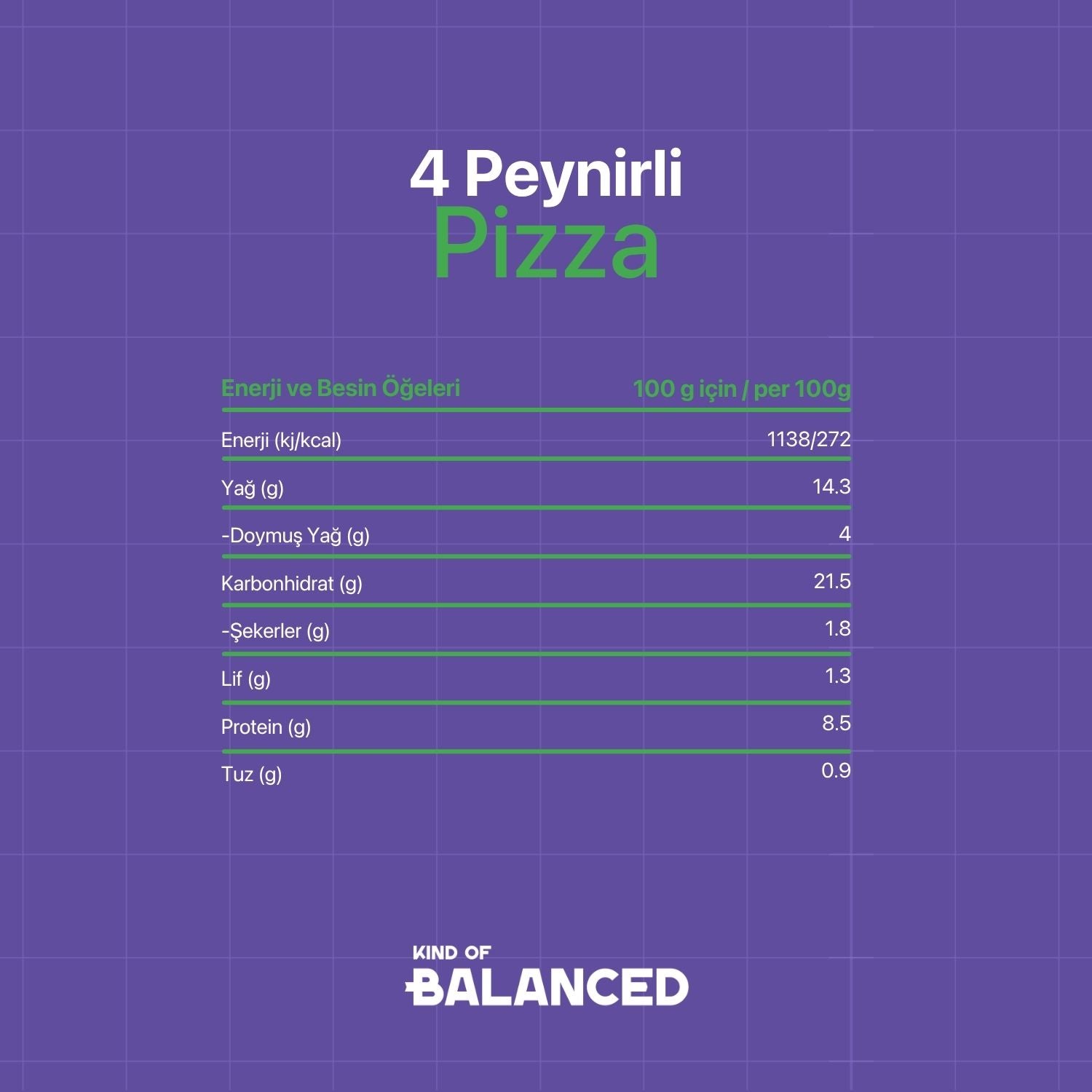4 Peynir Pizza 370 Gr, pizza keyfini yepyeni bir boyuta taşıyor! İnce ve çıtır yapısıyla dilediğiniz malzemeyi buluşturarak evde şahane pizzalar hazırlamanızı sağlıyor. Katkısız ve glutensiz oluşuyla gönül rahatlığıyla afiyetle tadına varabilirsiniz. Her lokmada pizzanın en keyifli halini keşfedeceksiniz!