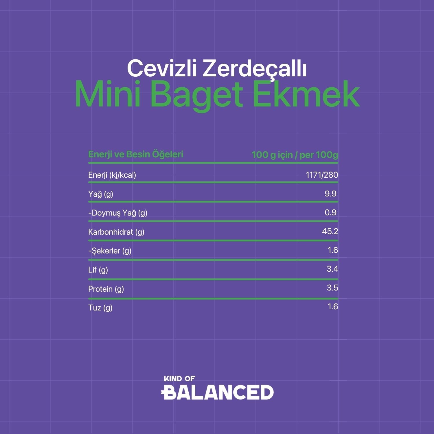 Paket içeriği: 5 Adet x 60 Gr Glütensiz Cevizli Zerdeçallı Mini Baget Ekmek Toplam: 300 Gram