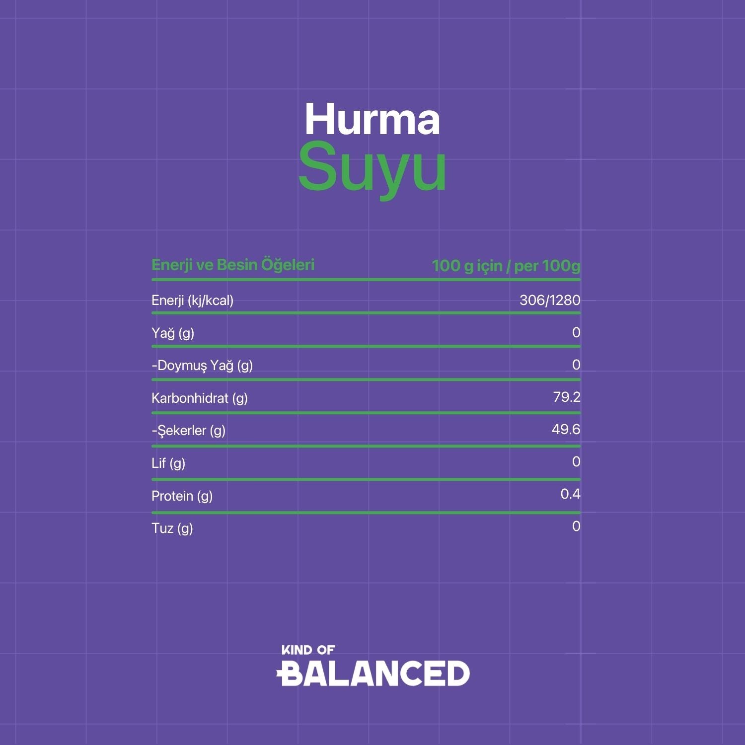 Hurma Suyu 350 Gr, ferahlatıcı aromasıyla gününüze tazelik katar. Katkısız içeriği ve hafif dokusuyla her yudumda içinizi serinletecek eşsiz bir lezzet.