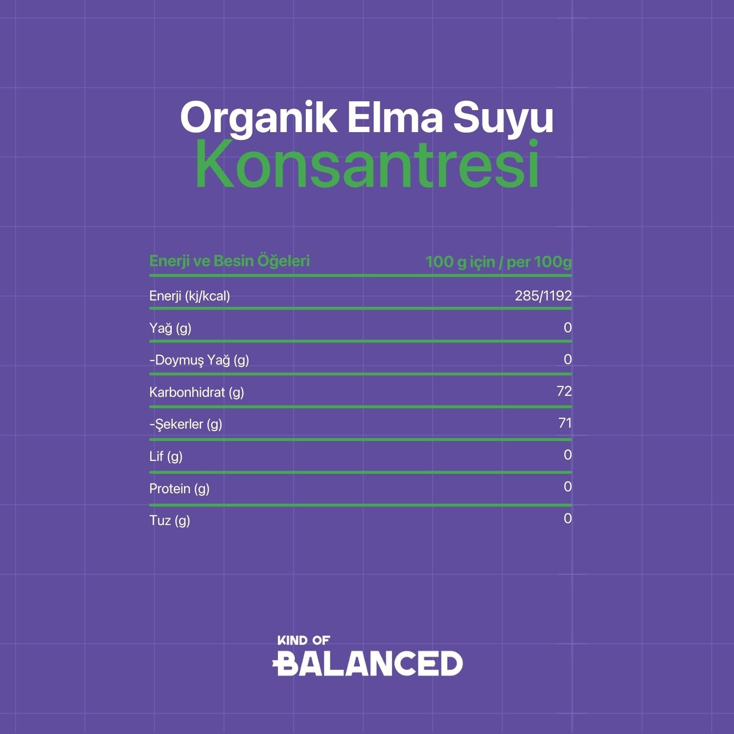 Organik Elma Suyu Konsantresi 340 Gr, ferahlatıcı aromasıyla gününüze tazelik katar. Katkısız içeriği ve hafif dokusuyla her yudumda içinizi serinletecek eşsiz bir lezzet.