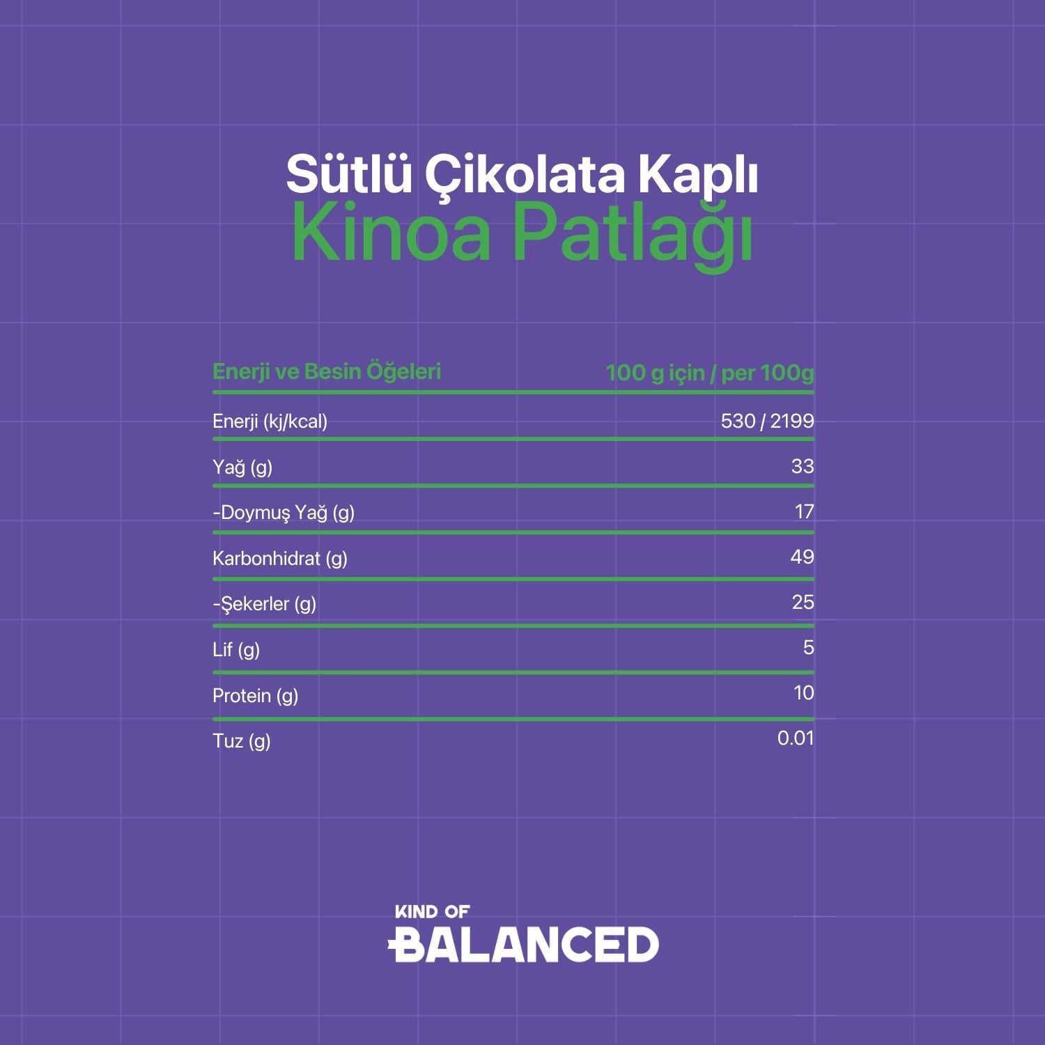 Sütlü Çikolata Kaplı Kinoa Patlağı 50 Gr, özenle hazırlanmış içeriği ve lezzetiyle damaklarda unutulmaz bir iz bırakır. Katkısız yapısıyla her anınıza eşlik edecek.